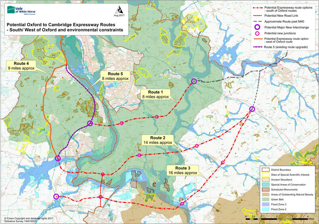 For a clearer image of the maps, click on the above or refer to pages 7 and 41 of the Oxford to Cambridge Expressway Strategic Study, stage 3 report, issued by Highways England in 2016: