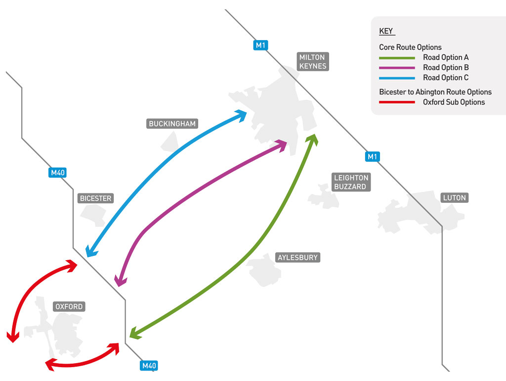 The map and documentation contained within the various reports discuss potential corridors, not routes. The reason for this is to establish which corridor between Oxford and Milton Keynes would be the most suitable for the necessary housing and infrastructure that will be required for such a major project.
